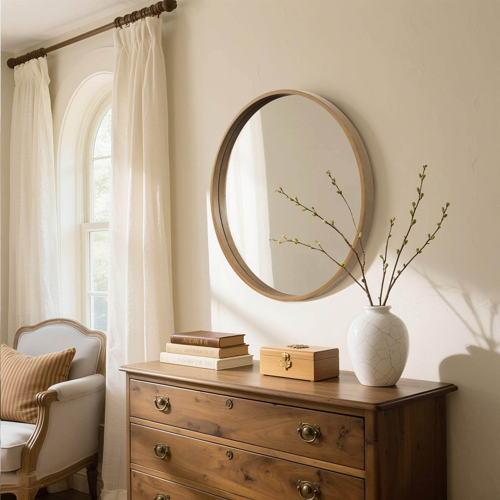 Love this mirror, arrived as expected, timely and undamaged, good packaging. The color is a bit darker than I expected, almost requested an exchange but at the end of the day it still fits in with my other furniture so I decided to keep it. It enhances my mid-century theme well.