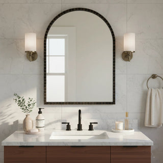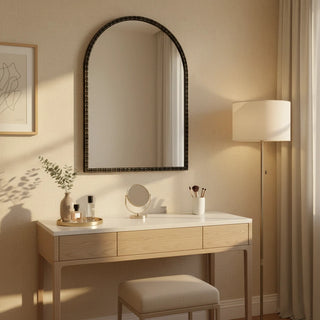 Metal Framed Arched Vanity Mirror with Beaded Frame for Living room Bathroom