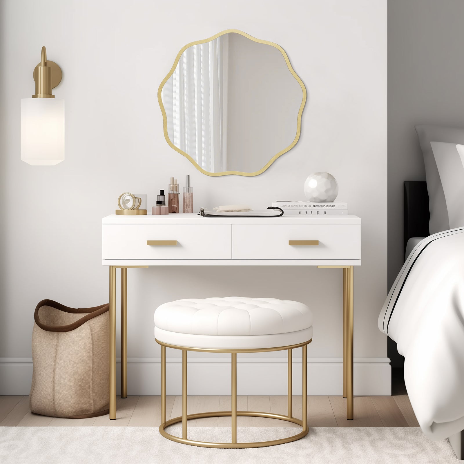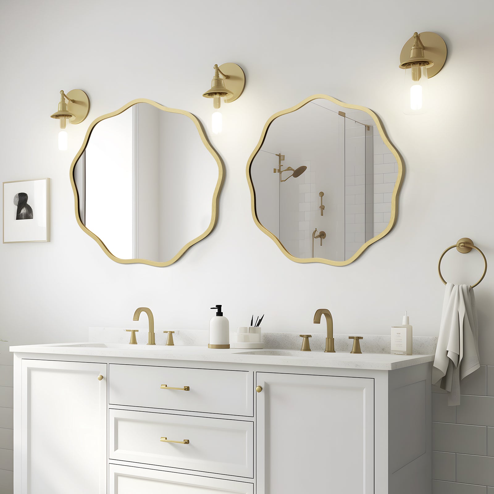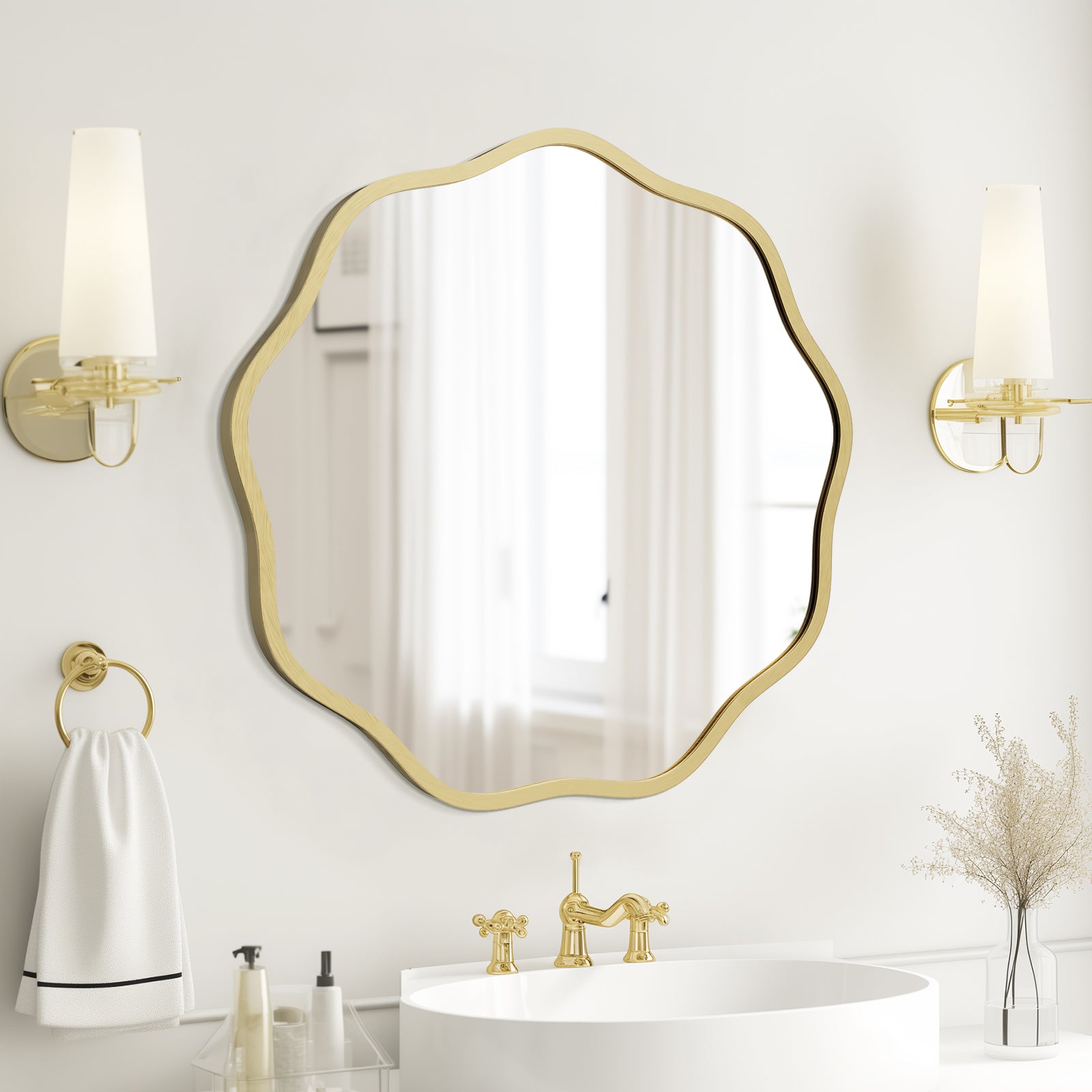 ELEGANT DESIGN: The gold wavy mirror features a distinctive wave-shaped edge, creating a captivating visual effect that adds modern glamour and sophistication to any room